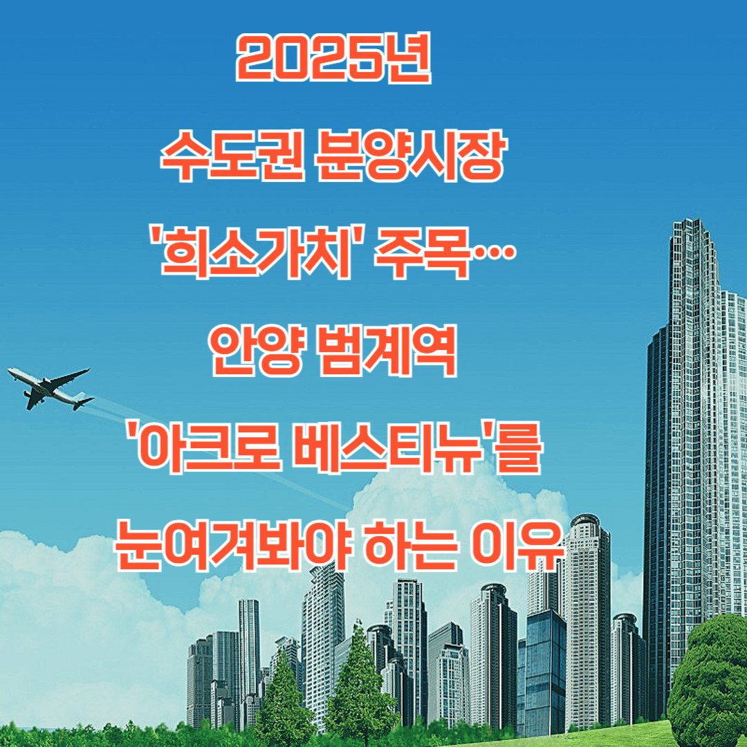 수도권 분양시장이 급격한 공급 감소 국면에 접어들며, 입지와 브랜드 경쟁력을 갖춘 단지에 대한 관심이 높아지고 있습니다. 특히 **안양 범계역 초역세권에 들어서는 '아크로 베스티뉴'는 실거주자는 물론, 투자 수요까지 사로잡으며 2025년 상반기 주목할 만한 분양 단지로 떠오르고 있습니다.